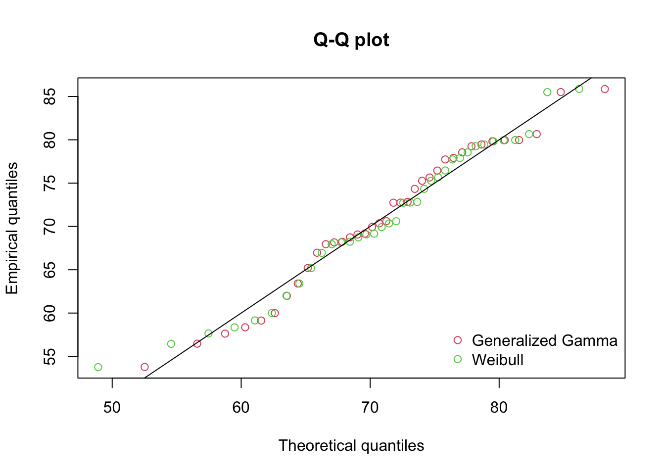 Based on these results, we will opt for the Weibull distribution as it has a prefereable AIC, BIC, and SSE while the Log-Likelihoods were basically the same. While Pham’s criteria was better for the Generalized Gamma, we know that the Weibull is just a special case of the Genearlized Gamma and we prefer the simpler model when other metrics give ambiguous options.